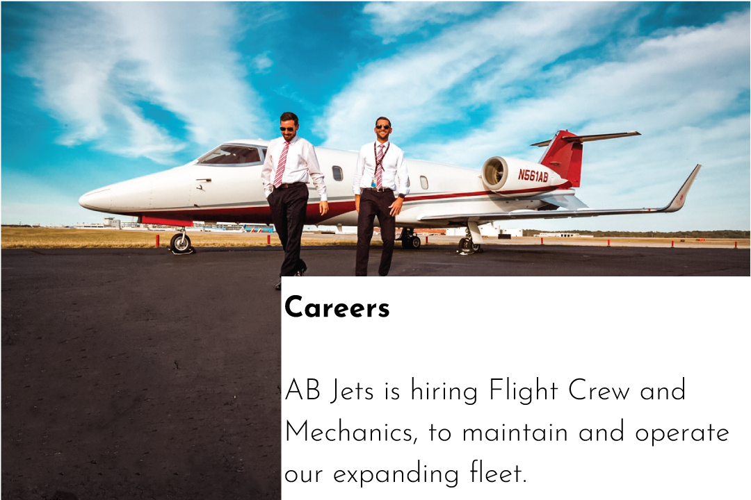 @FlyABjets Charter Information | Request a Quote Instagram Facebook LinkedIn Phone (888) 520-JETS (5387) Email dispatch@abjets.com AVAILABILITY & EMPTY LEGS IN YOUR INBOX * indicates required Email Address *First Name Last Name Company Name Frequency Retail Emails - Empty Legs and SpecialsBroker emails - Daily Availability Call for Availability (901) 324-0046 Copyright © 2026 AB Jets, LLC. All rights reserved. Quick Links Fly AB Jet Card Aircraft Management Aircraft Acquisition Our Fleet Articles Safety About Legal Careers