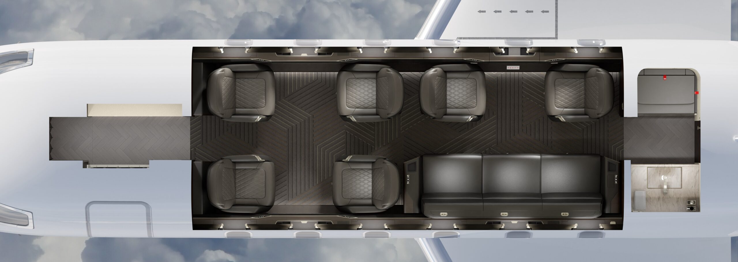 Accommodating up to nine passengers, the Challenger 3500 features a spacious, class-leading cabin engineered for comfort and efficiency. A cabin altitude of only 4,850 feet at 41,000 feet and an ultra-quiet interior ensure exceptional comfort on every flight.